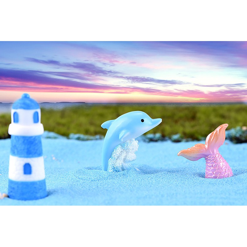 Phụ kiện tiểu cảnh terrarium mô hình thuyền, nàng tiên cá trang trí tiểu cảnh bải biển, sen đá