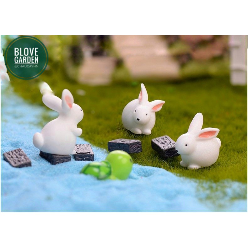 Phụ kiện Tiểu cảnh - Thỏ trắng dễ thương Bằng Nhựa, Làm Tiểu Cảnh - trang trí terrarium / decord mô hình
