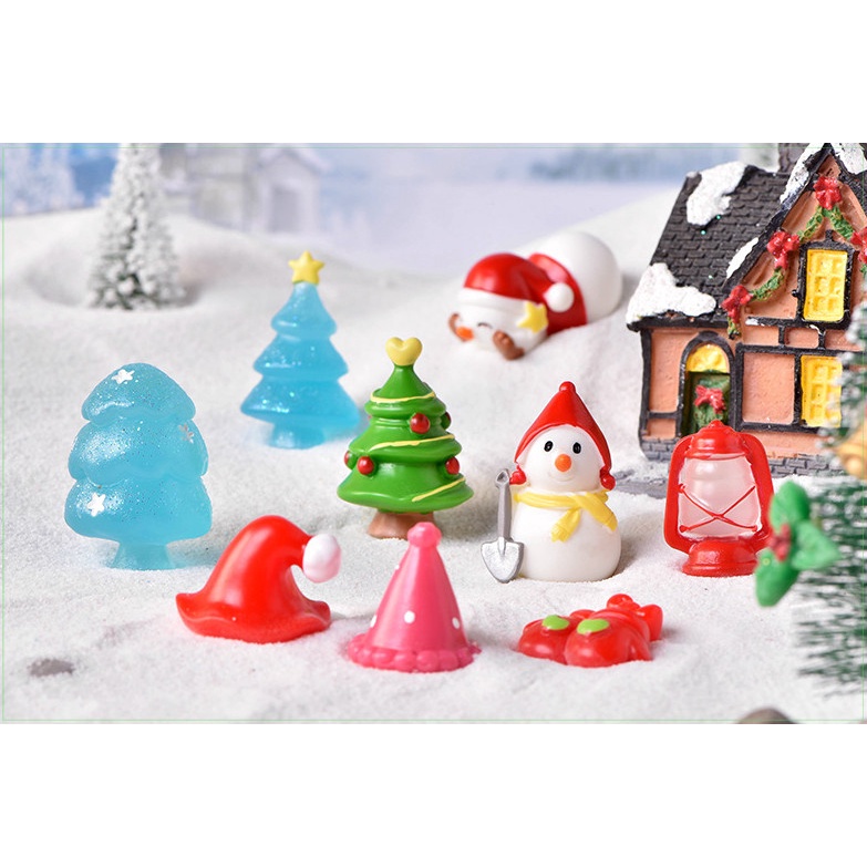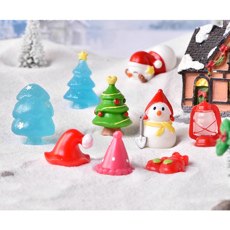 Phụ kiện tiểu cảnh, trang trí giáng sinh, noel mô hình nón, cây thông, người tuyết, đèn mẫu mới