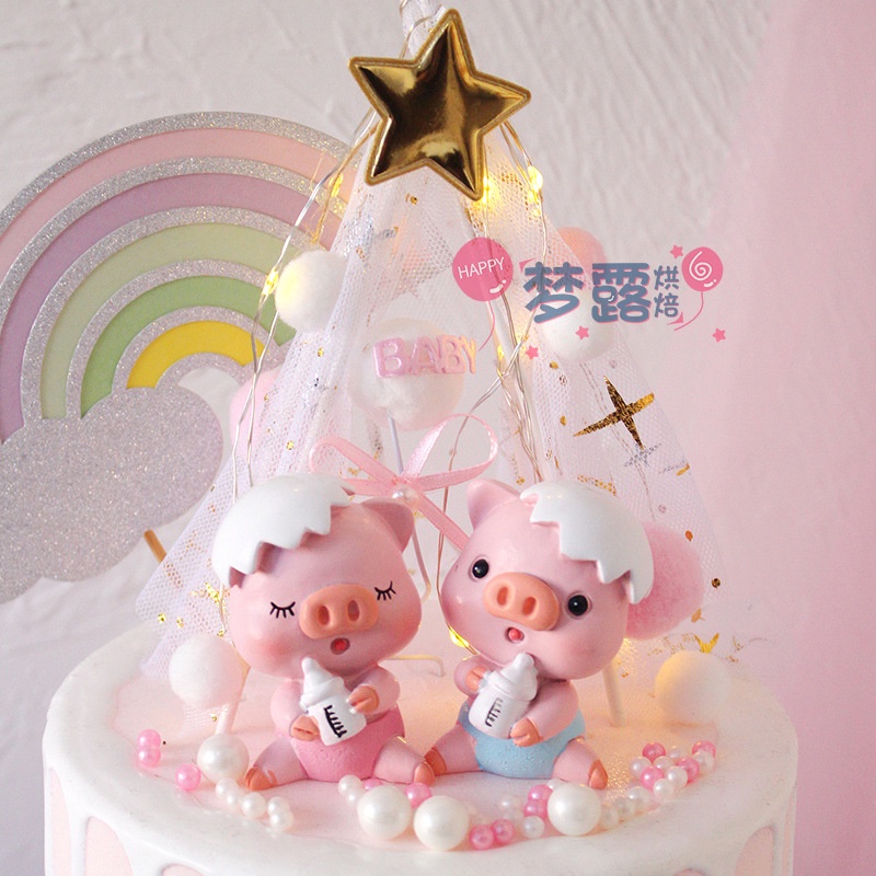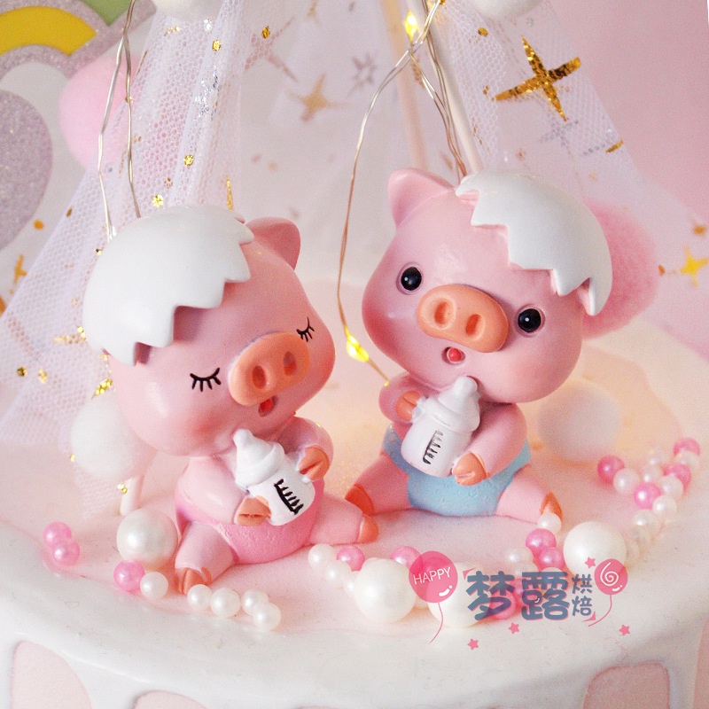 Giới thiệu phụ kiện trang trí bánh kem [FREESHIP❤️] Cặp heo bình sữa