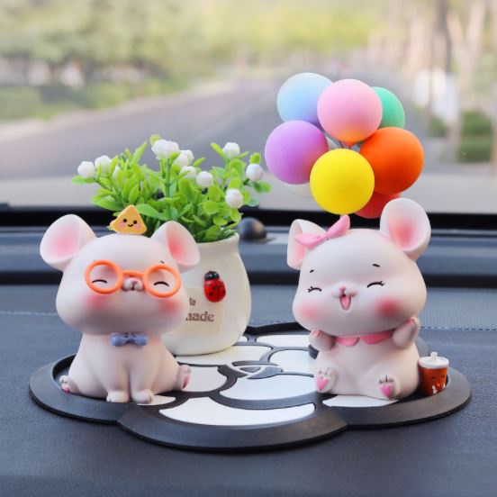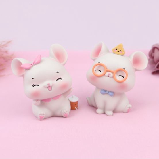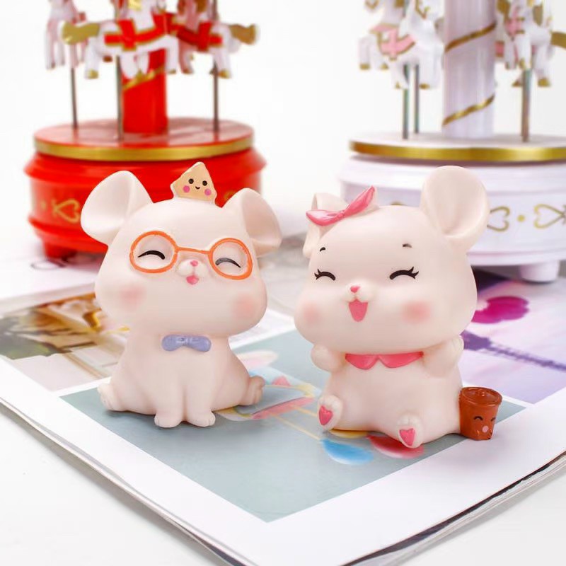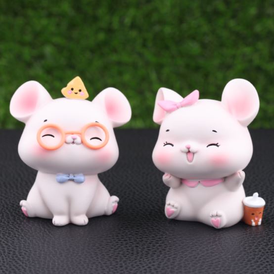 - Xuất sứ: Phụ kiện trang trí bánh sinh nhật bánh kem - Cặp đôi chuột đeo kính