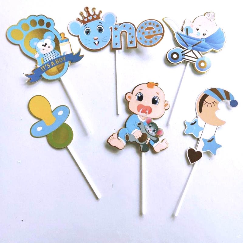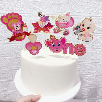 MÔ TẢ : Phụ kiện trang trí bánh sinh nhật bánh kem - SET THẺ CẮM GIẤY EM BÉ BÀN ONE