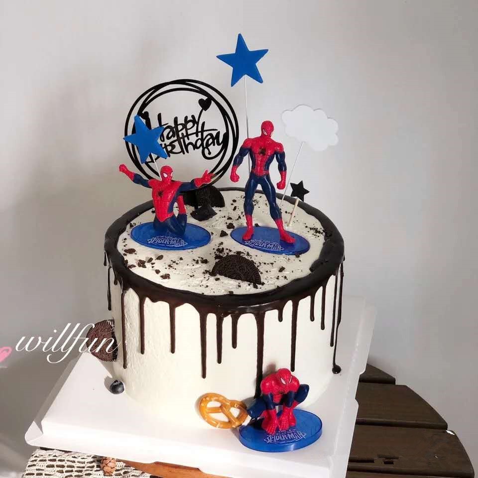 Phụ Kiện Trang Trí Bánh Sinh Nhật Bánh Kem - Bộ người nhện 7 món