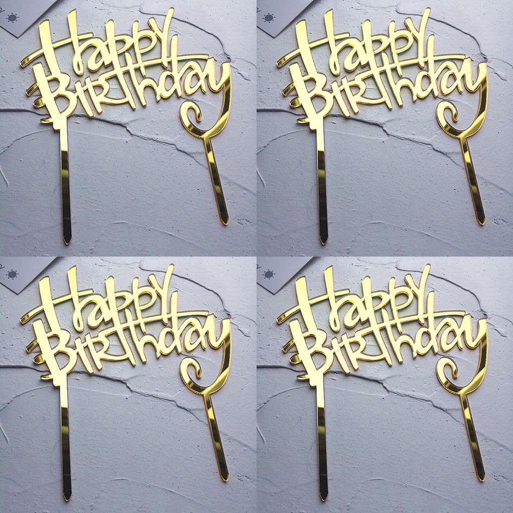 Phụ Kiện Trang Trí Bánh Sinh Nhật Bánh Kem - Combor 10 mica tráng gương hpbd 2 chân vàng