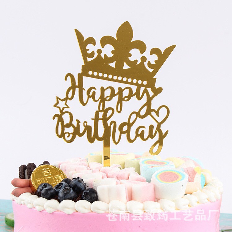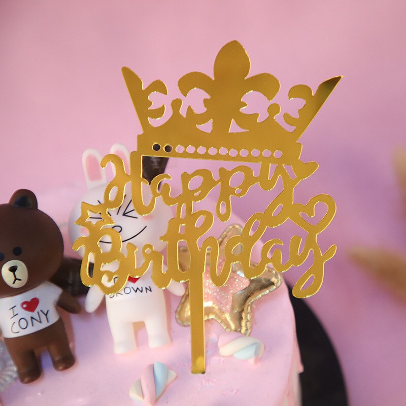 Phụ Kiện Trang Trí Bánh Sinh Nhật Bánh Kem - Combo 10 mica tráng gương hpbd vương miện lớn vàng
