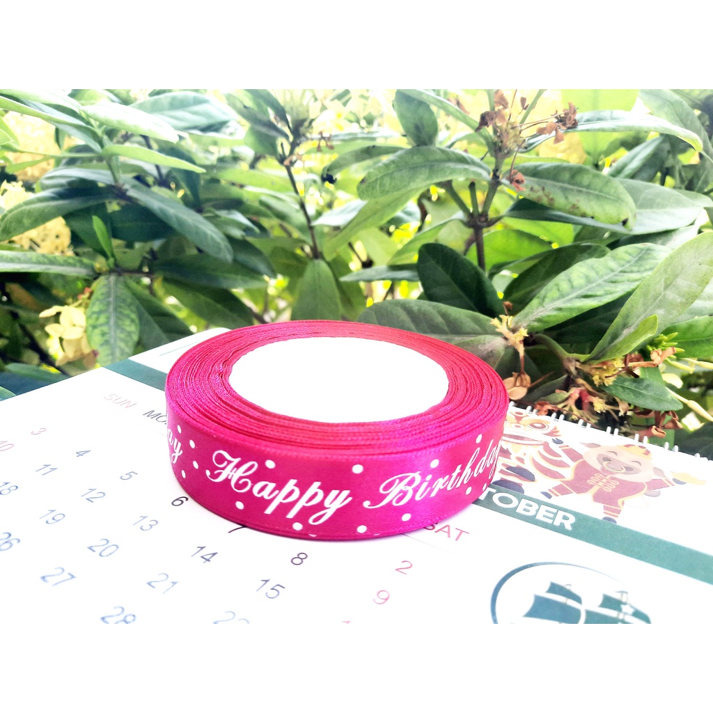 MÔ TẢ : Phụ kiện Trang Trí Bánh Sinh Nhật Bánh Kem - RUY BĂNG LỤA IN CHỮ HAPPY BIRTHDAY quấn bánh