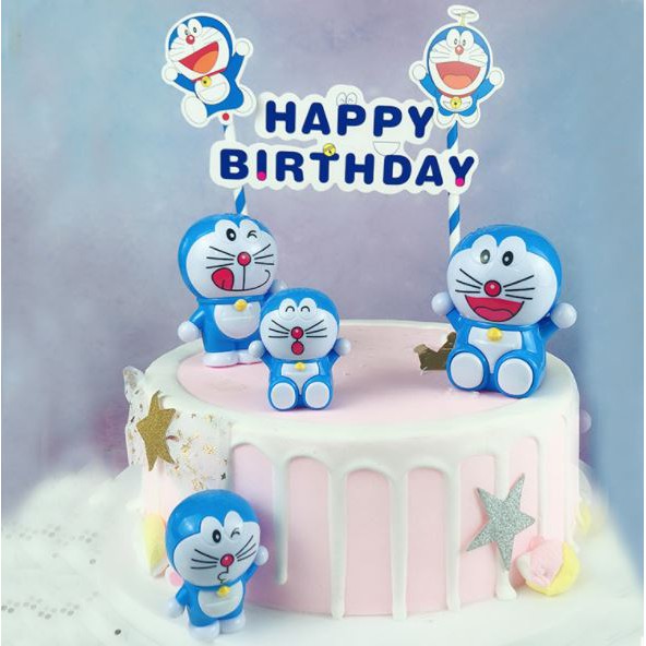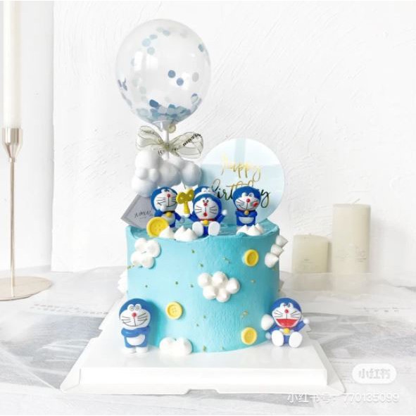 - Xuất sứ: Phụ Kiện Trang Tri Bánh Sinh Nhật, Bánh Kem Set 4 Doremon xanh, hồng nhựa trang trí bánh