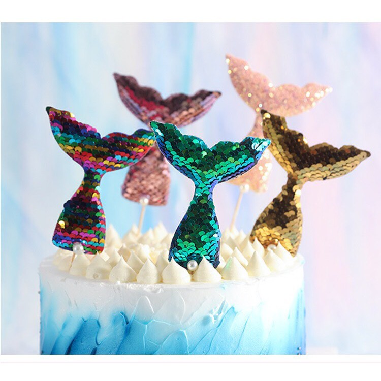 - SÉT CẮM ĐUÔI CÁ KIM TUYẾN trang trí bánh kem được làm bằng nhựa cao cấp an toàn