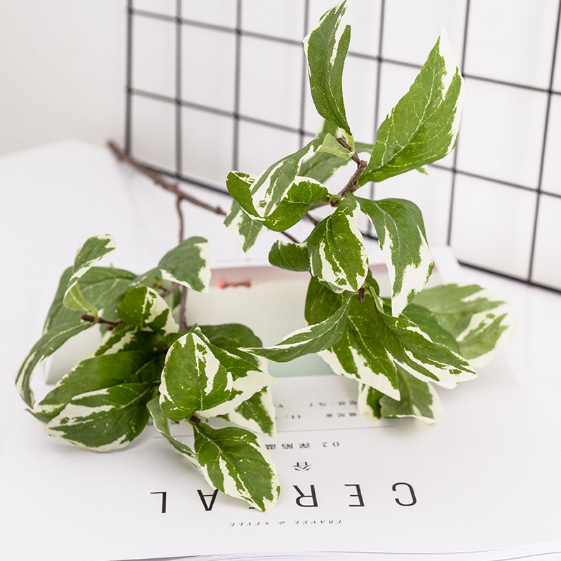 Cành Cây Cẩm Thạch thuộc cây thân cỏ, sống lâu năm phân nhiều cành nhánh. Cây có màu lá sáng, dày và thô, dạng thon dài, sờ vào có cảm giác sần. Chúng có màu xanh bóng với các viền mép loang lổ màu trắng hoặc vàng.Sản phẩm Cành Cây Cẩm Thạch giả được thiết kế với chất liệu nhựa PE không độc hại cho người dùng và màu sắc trên lá cũng rất giống với gam màu trên lá thật. Đặc biệt là màu sắc trên Cành Cây Cẩm Thạch giả sẽ xanh mãi, không bị phai màu theo thời gian. Màu sắc của lá đem lại cho ta một cảm giác bình yên, dễ chịu và thư giãn sau một ngày mệt mỏi.