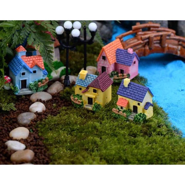 Biệt thự mini là những mẫu phụ kiện nhà đẹp, màu sắc giống thật, sử dụng trang trí tiểu cảnh, sáng tạo các mẫu terrariumm đẹp