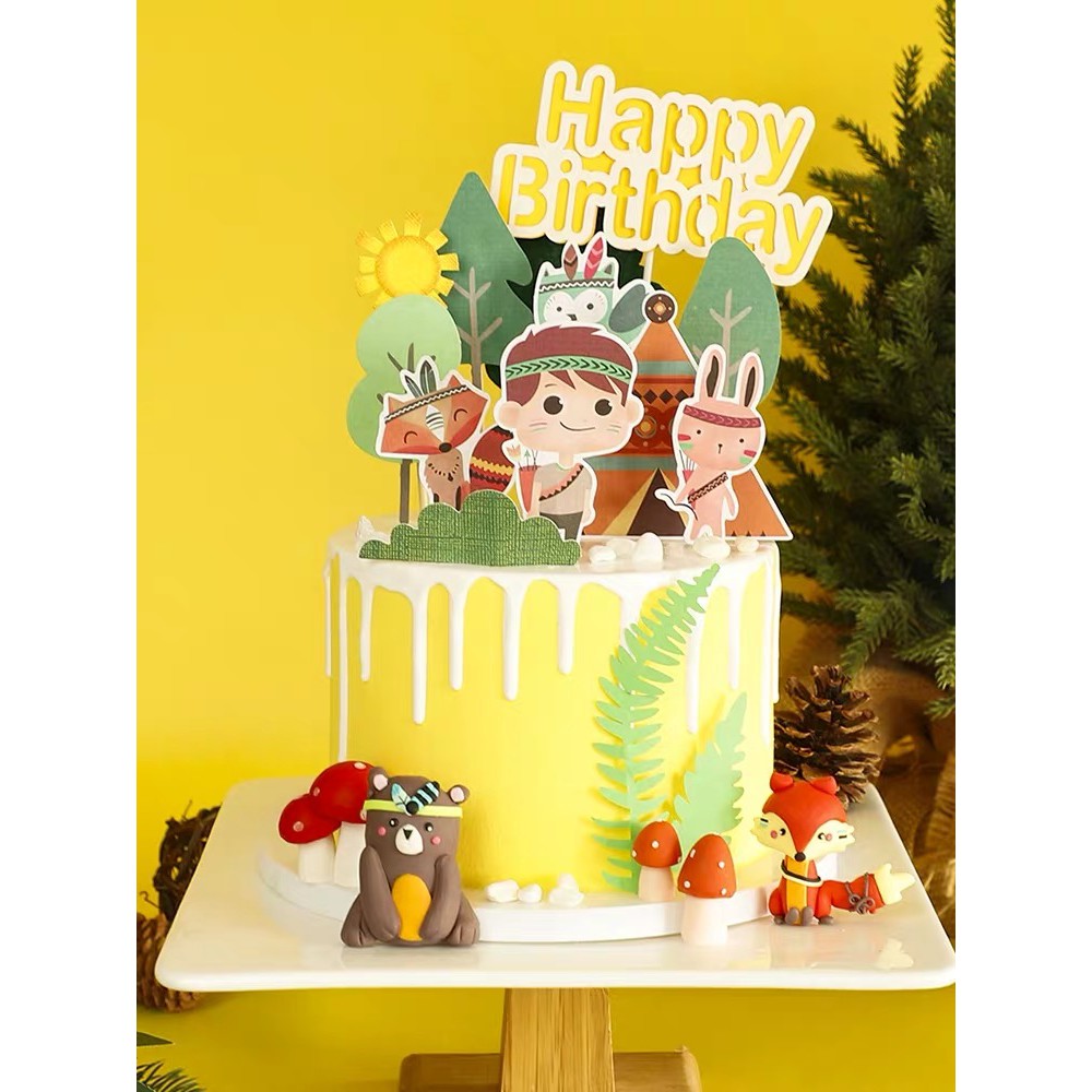Phụ kiện trang trí Set que cắm cậu bé + nhà thổ dân