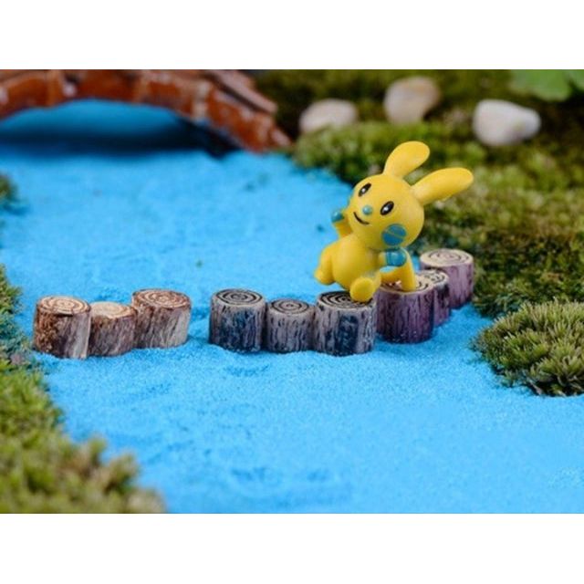 Sử dụng sản phẩm: cầu trụ gỗ làm bằng nhựa, mô phỏng cầu làm bằng gỗ bắc qua sông, thích hợp tạo tiểu cảnh sông nước núi rừng