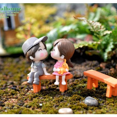 Phụ kiện trang trí tiểu cảnh: mẫu cặp đôi ngồi ghế