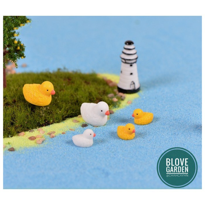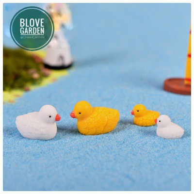 Phụ kiện trang trí tiểu cảnh mẹ con vịt lông vàng trang trí chậu cây cảnh, sen đá xương rông làm mô hình terarium