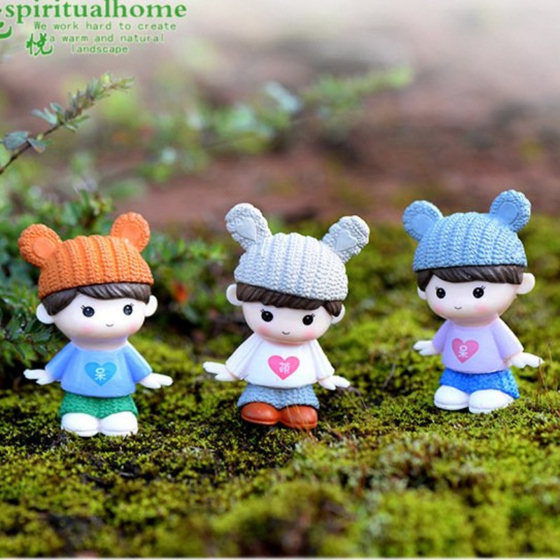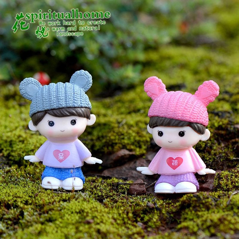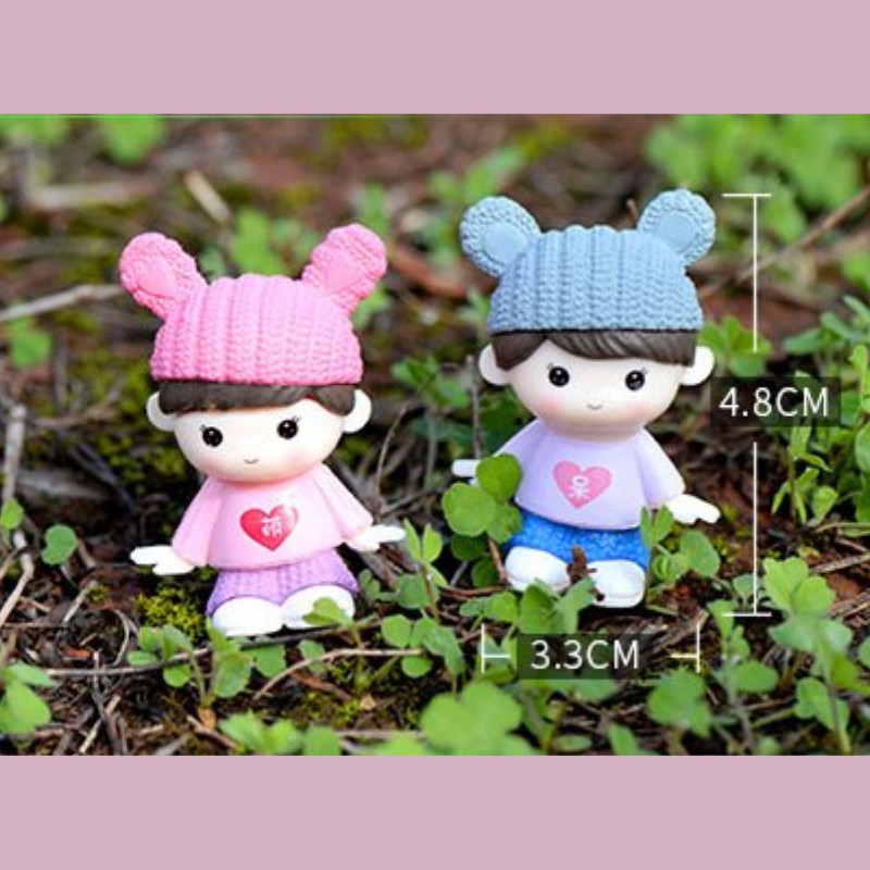 Nhà cửa & Đời sống > Làm vườn > Trang trí vườn || Phụ kiện trang trí tiểu cảnh terrarium mini - Tượng trang trí cô cậu bé mũ len nhiều mầuCòn hàng