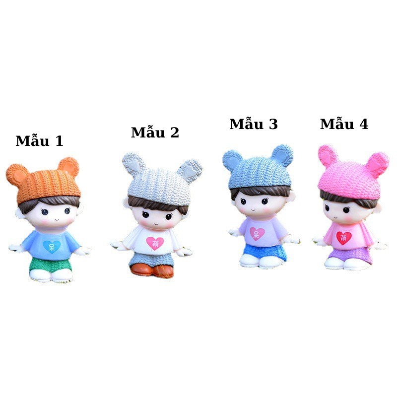 Phụ kiện trang trí tiểu cảnh terrarium mini - Tượng trang trí cô cậu bé mũ len nhiều mầu
