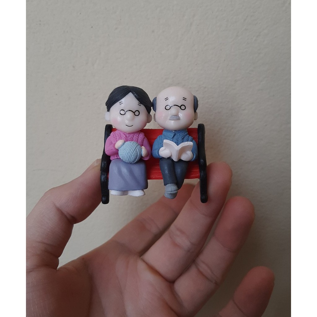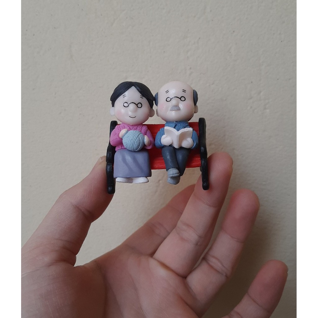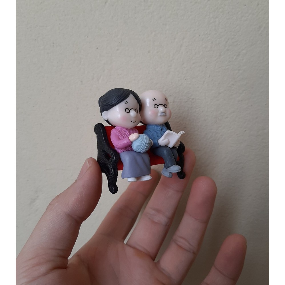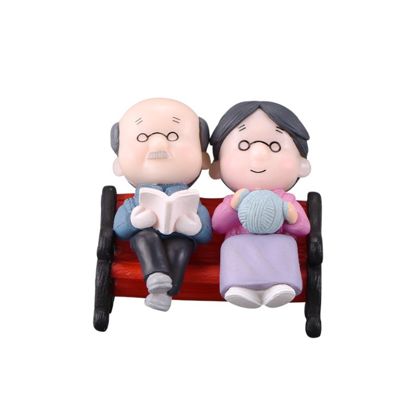 Phụ kiện trang trí tiểu cảnh: mẫu ông bà lão ngồi ghế