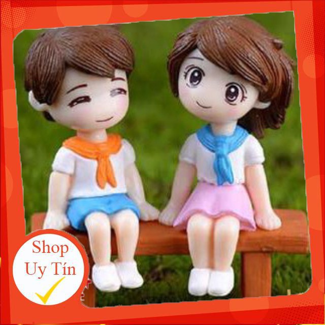 phụ kiện trang trí tiểu cảnh hình Cặp học sinh ngồi ghế |FREESHIP SIÊU XINH | LỖI 1 ĐỔI 1