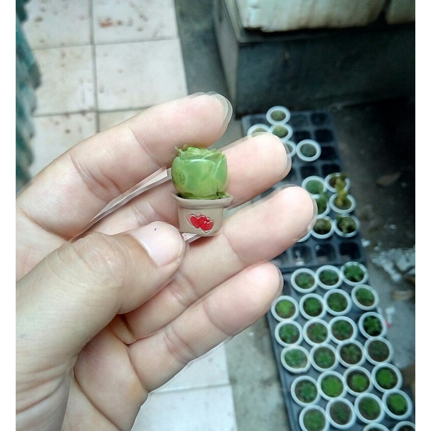 - Kích thước rộng ~ 1.6cm, cao 3cm (với chậu cao nhất)
