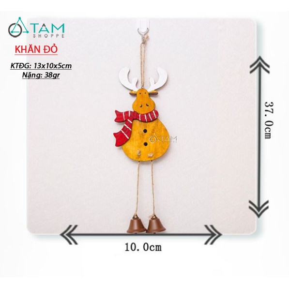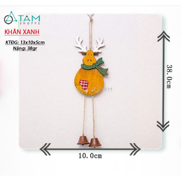Giới thiệu Phụ kiện treo Noel Tuần lộc gỗ vàng chân chuông X-PKTCT-42