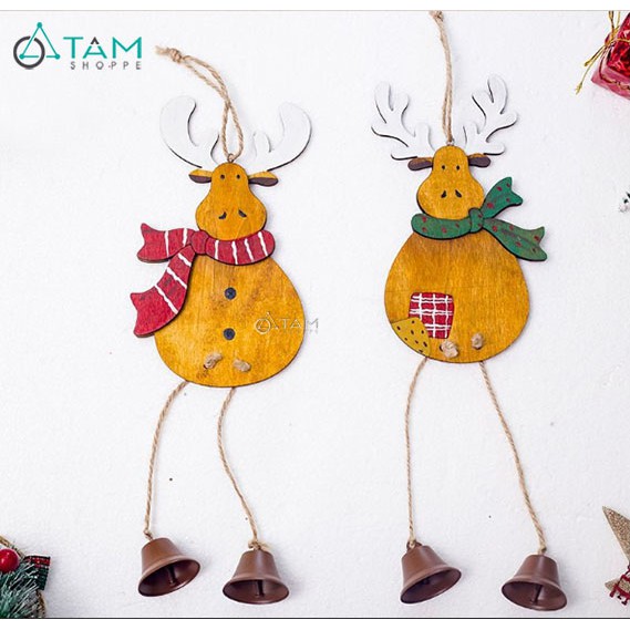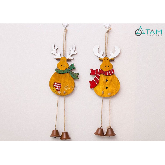 Phụ kiện treo Noel Tuần lộc gỗ vàng chân chuông X-PKTCT-42