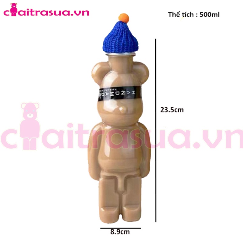Phụ Kiện Và Chai Nhựa PET Giá Rẻ - Chai Nhựa PET Nắp Nhôm Cao Cấp Hình Gấu Bearbrick