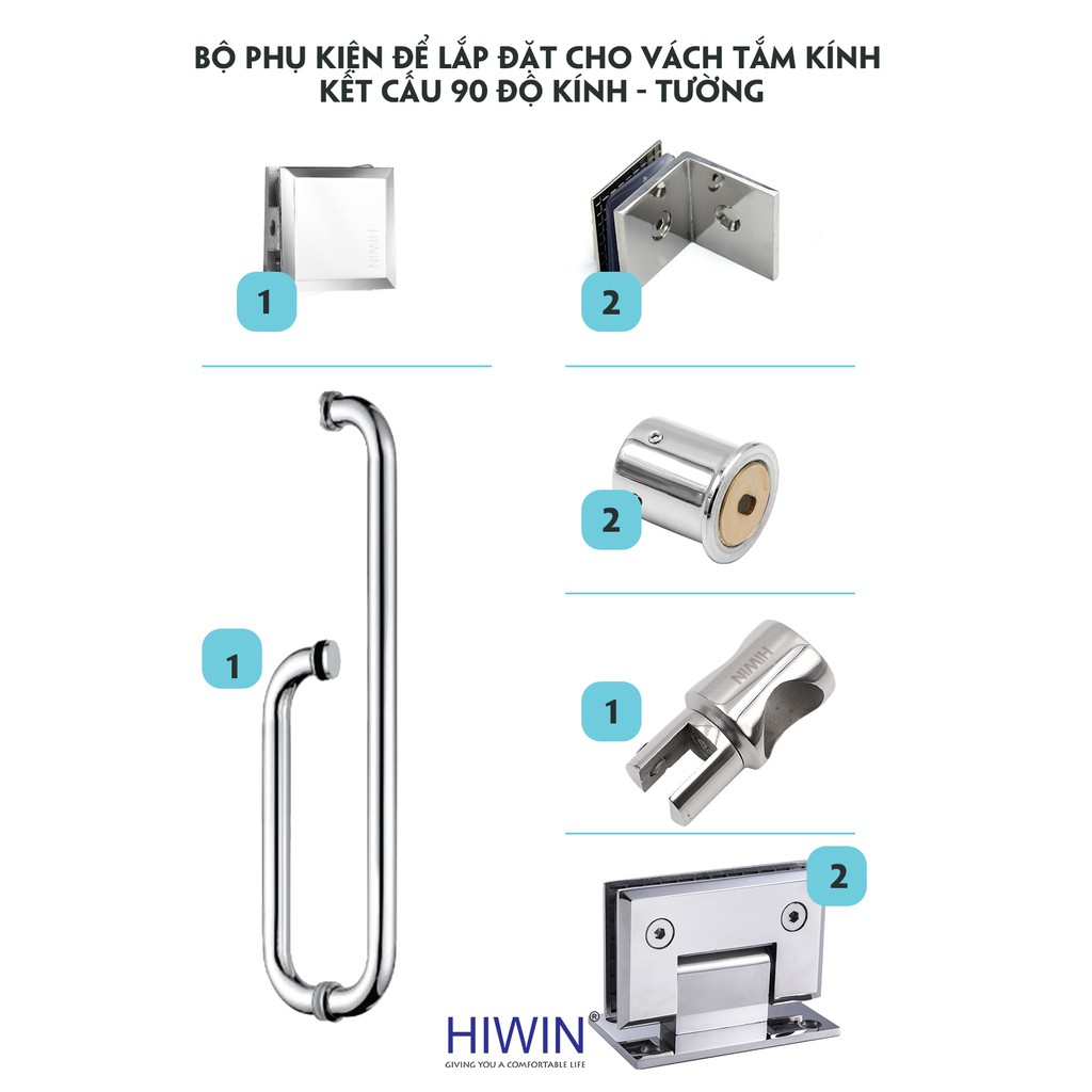 Nhà cửa & Đời sống > Đồ dùng phòng tắm > Khác || Bộ phụ kiện vách tắm kính kết cấu 90 độ kính - tường SUS304 Hiwin PKF-90KTCòn hàng