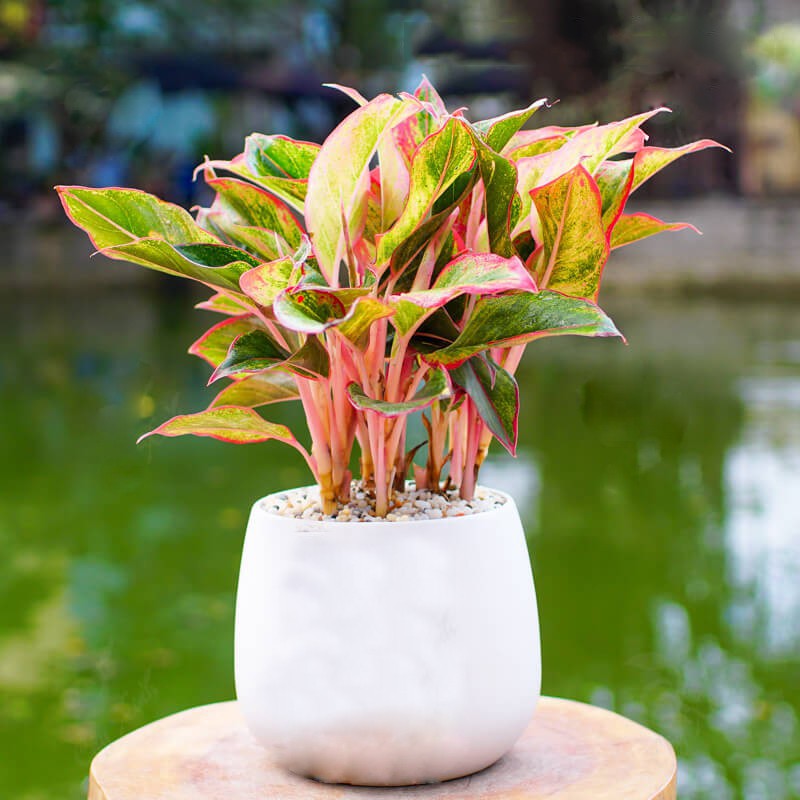 Cây Phú Quý mang đến giàu sang, phú quý và may mắn cho gia chủ theo phong thủy. Là loại cây khá đẹp thích hợp để bàn, kệ sách, quán cafe, quầy thu ngân,… Cây cũng được biết đến với khả năng thanh lọc không khí, hấp thụ các khí độc gây hại cho con người và giảm bớt khói bụi.Cây Phú Quý thuộc họ Ráy (Araceae). Thân cây có màu trắng hồng và được tạo thành từ những bẹ lá. Lá Phú Quý mỏng, mềm, bóng, có viền màu đỏ hồng, bên trong có màu xanh đậm.