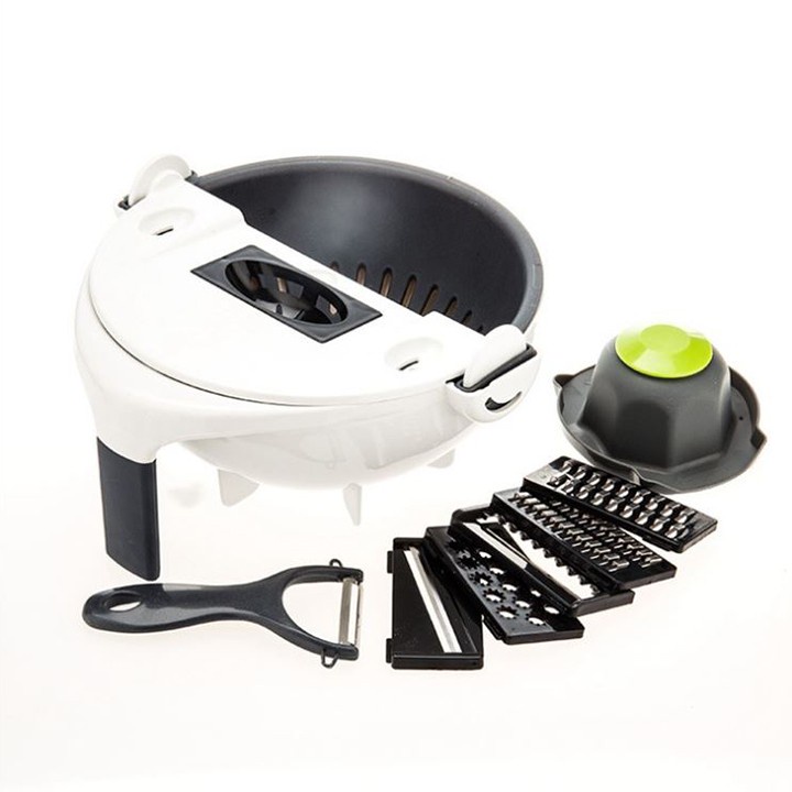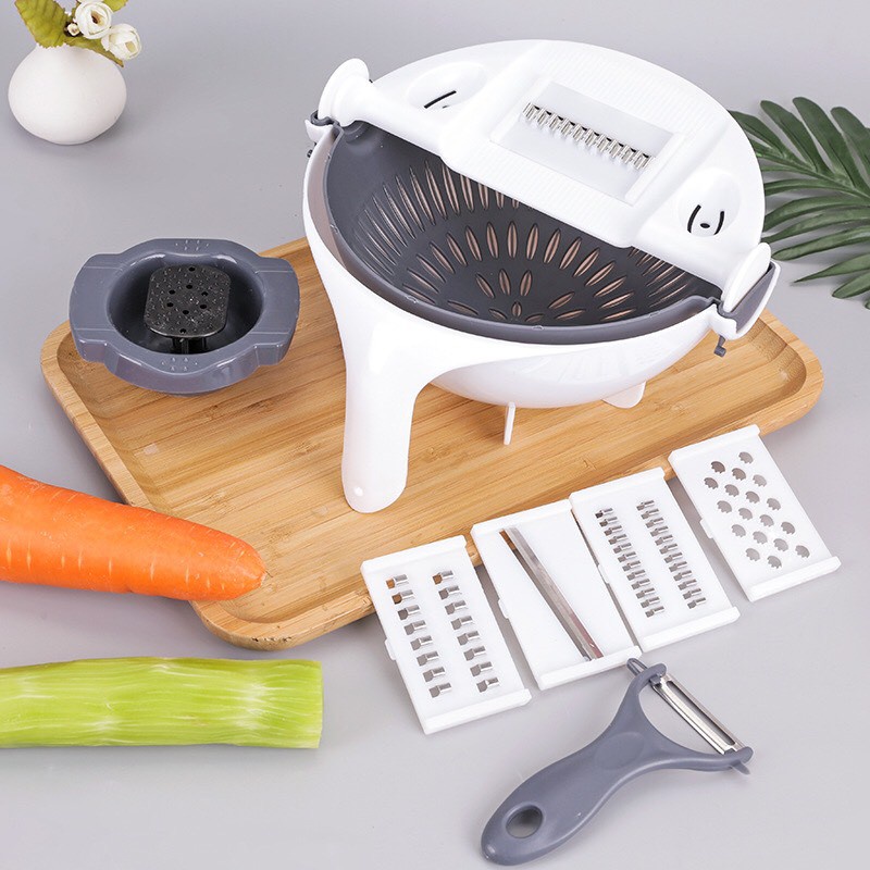 [Phù thủy nhà bếp] Bộ Dụng Cụ Đa Năng Thông Minh Nạo Rau - Củ - Quả Kèm Rổ 9 Trong 1