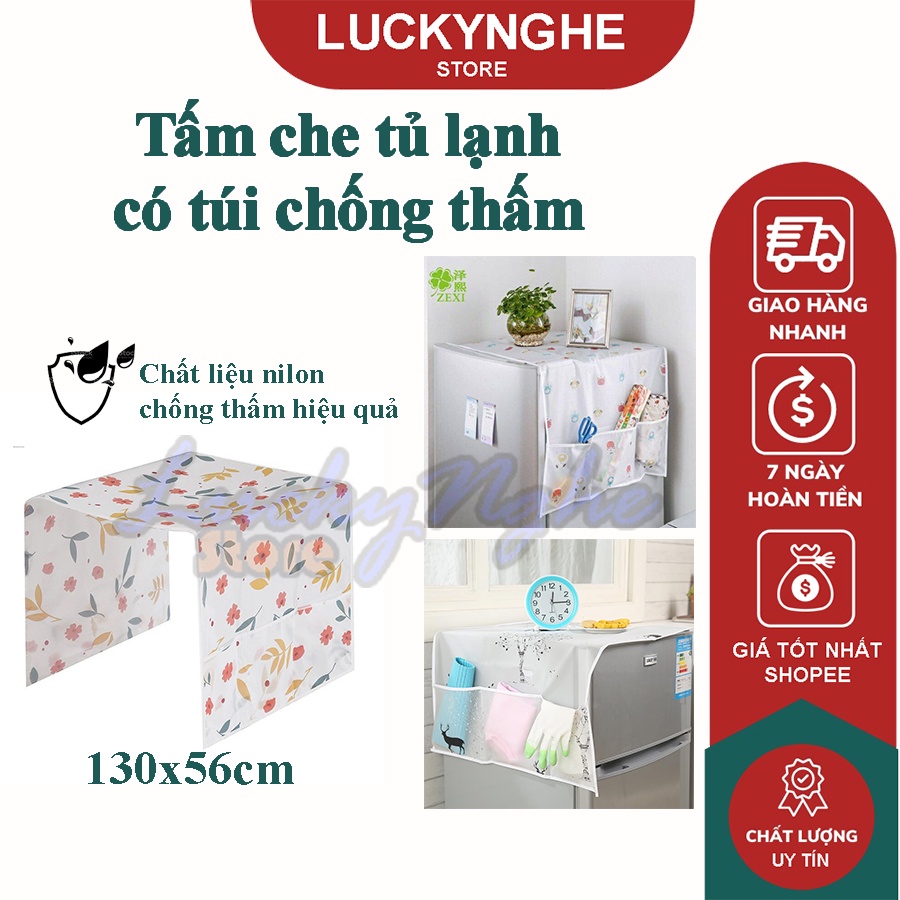 Tấm phủ tủ lạnh che tủ lạnh có túi chống thấm nước đựng đồ tiện dụng