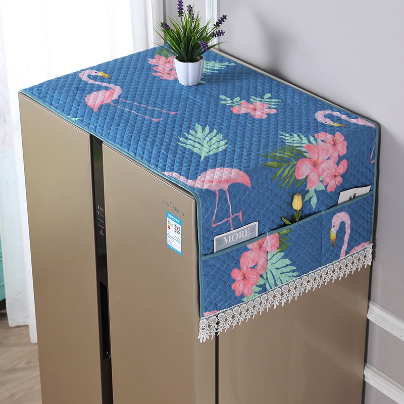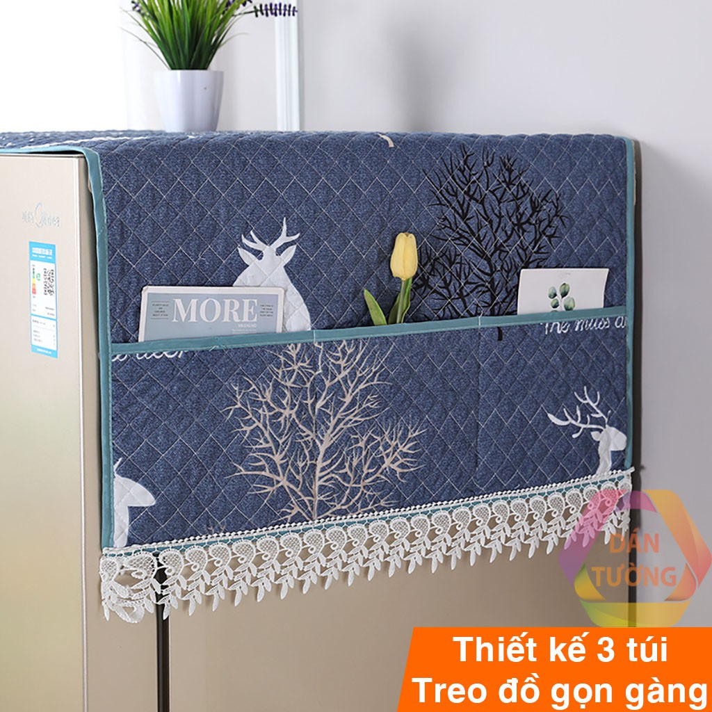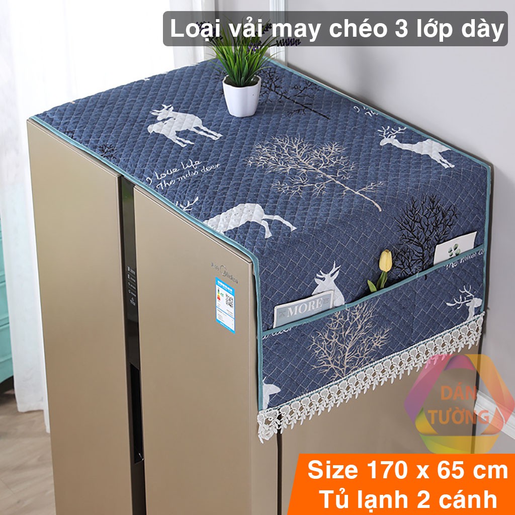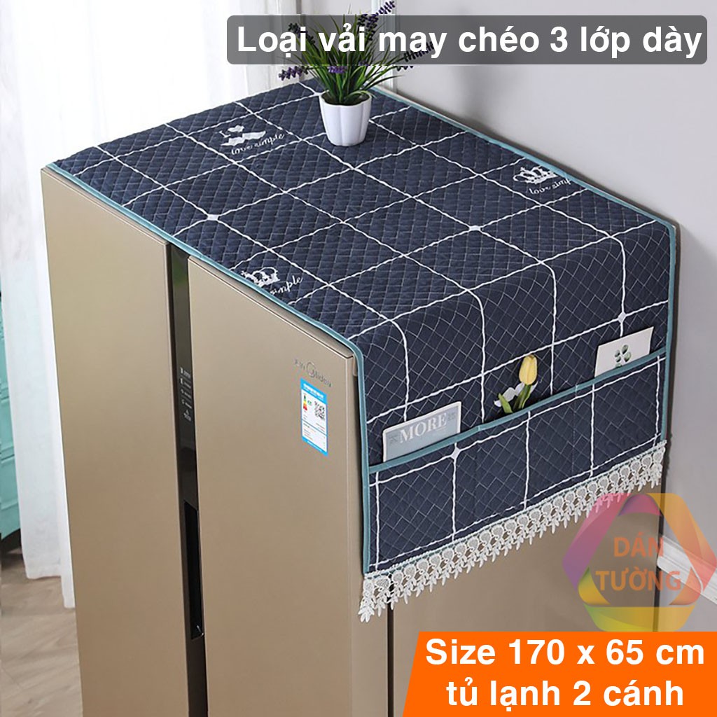Tấm phủ tủ lạnh đôi 2 CÁNH lớn CAO CẤP MDT _PHC, khăn phủ che tủ lạnh vải may chéo 3 lớp dày, có túi size to 65 x 170cm* 5 CAM KẾT