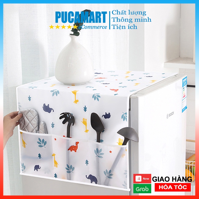 Tấm Phủ Tủ Lạnh PUCA, Khăn Phủ Tủ Lạnh, Tấm Che Tủ Lạnh, Áo Trùm Tủ Lạnh Chống Bụi Có Túi Đựng 2 Bên