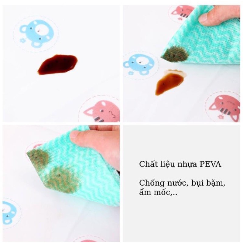 - Khăn được làm bằng chất vải nilon PEVA không thấm nước, bền đẹp, dễ dàng vệ sinh, giặt giũ.