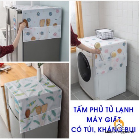 Tấm Phủ Tủ Lạnh máy giặt lò vi sóng in hình dễ thương, bảo vệ tủ chống bụi bẩn, chống thấm nước có túi bên hông đựng đồ