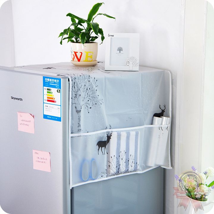 Nhà cửa & Đời sống > Nội thất > Tủ bếp || Phủ tủ lạnh nhựa PVC chống nước có ngăn phụ họa tiết bảo vệ chống xước trầy để đồ tiện dụngCòn hàng