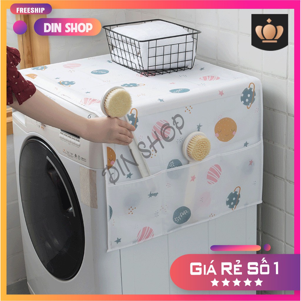Tấm phủ tủ lạnh ☀️PEVA CAO CẤP☀️ Tấm vải che nóc tủ lạnh chống bụi, chống thấm có túi đựng 2 bên tiện lợi