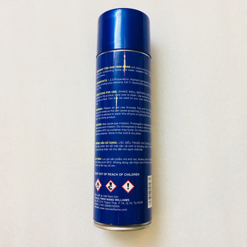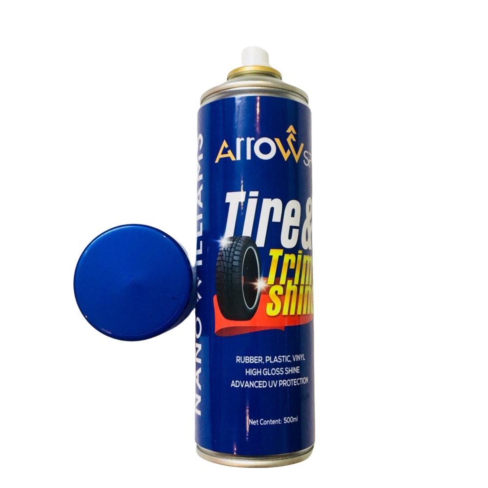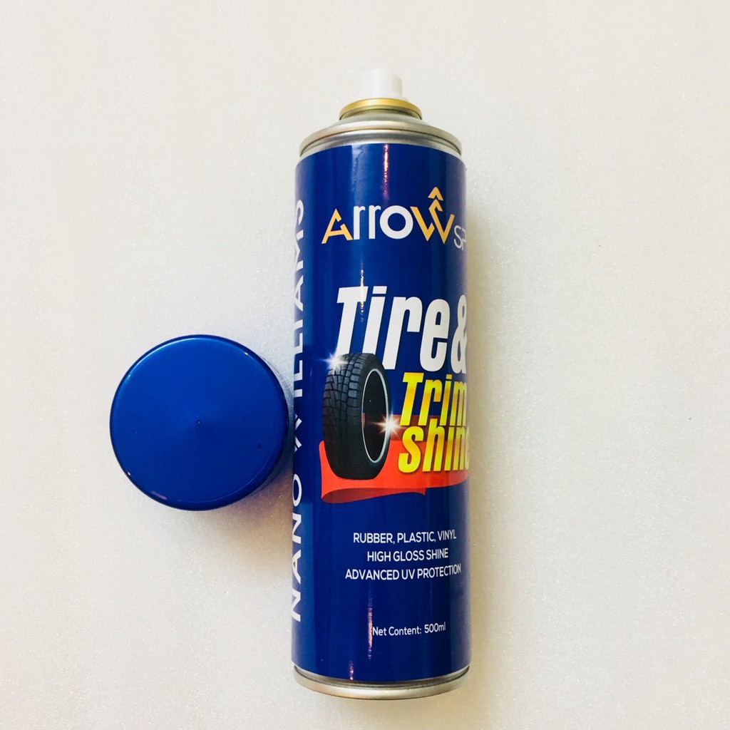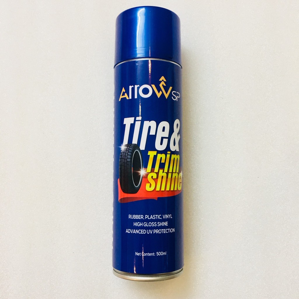 -XỊT DUNG DỊCH ARROW TIRE& TRIM SHINE LÊN CHỖ NHỰA BÓNG HAY VỎ XE CẦN LÀM BÓNG.