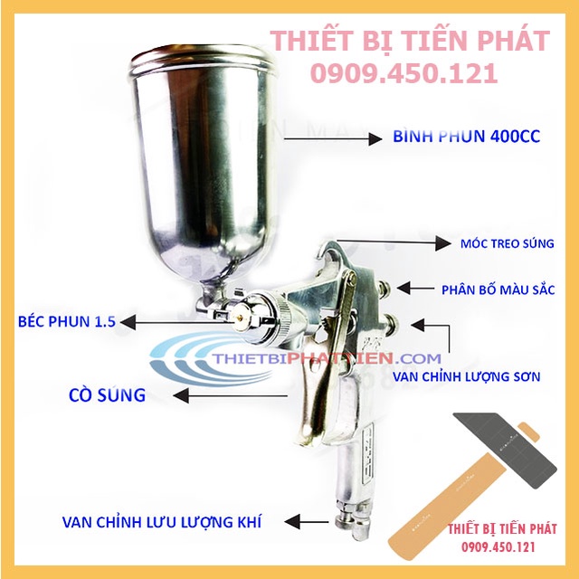- Súng phun sơn bình trên với lỗ phun 1.5mm