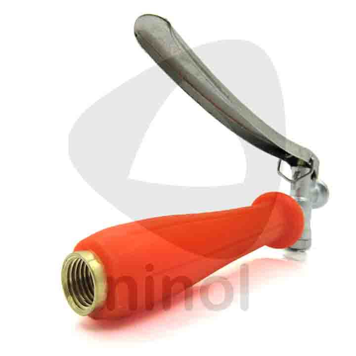 - Van khóa của cần được lắp đặt gần tay cầm, khi phun thuố.c chỉ cần dùng lực bóp vào tay van, van mở ra cho phép nước thuố.c trừ sâu đi qua đến đầu phun và phun ra ngoài.
