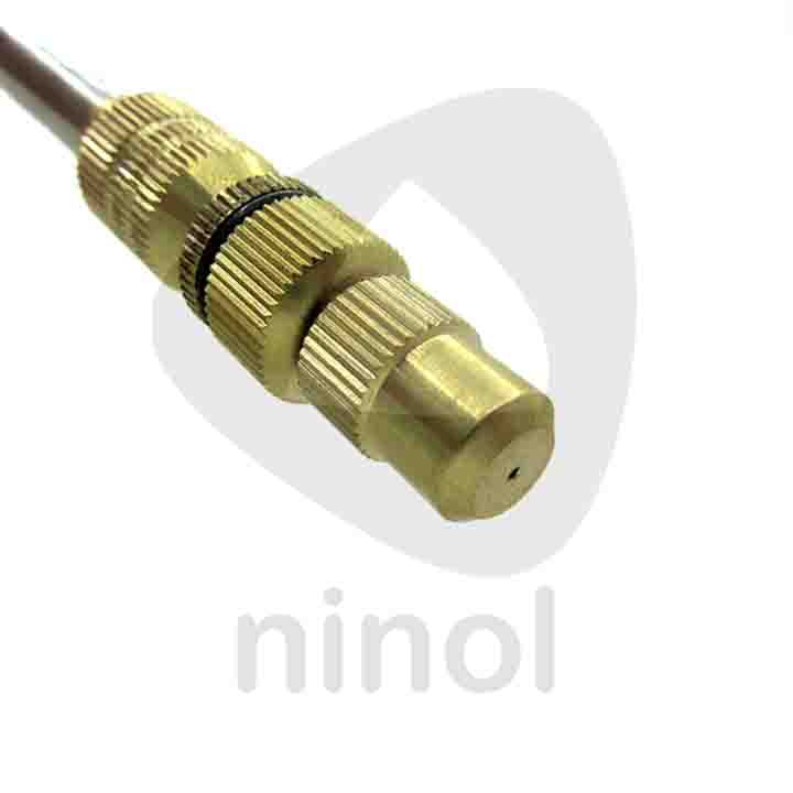 - Đầu phun được làm bằng đồng, lỗ phun nhỏ giúp làm tăng áp lực nước hoặc chất lỏng khi phun ra. Dòng nước phun ra có độ xòe rộng và đều.