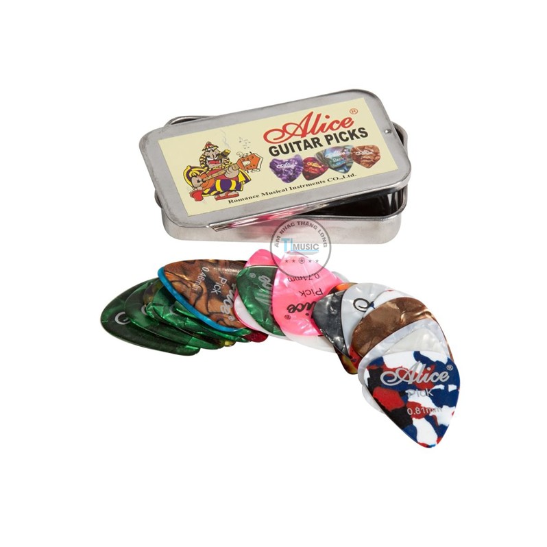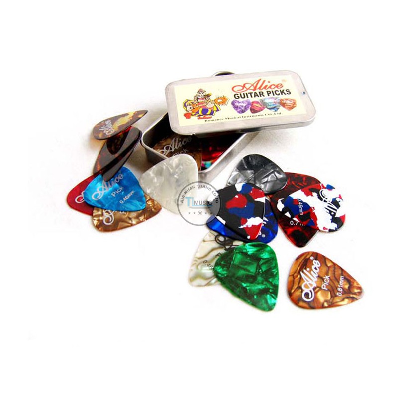 Sở thích & Sưu tầm > Nhạc Cụ & Phụ Kiện > Phụ Kiện Âm Nhạc || Pick gảy guitar Alice Hộp vuông inox + 24 móngCòn hàng