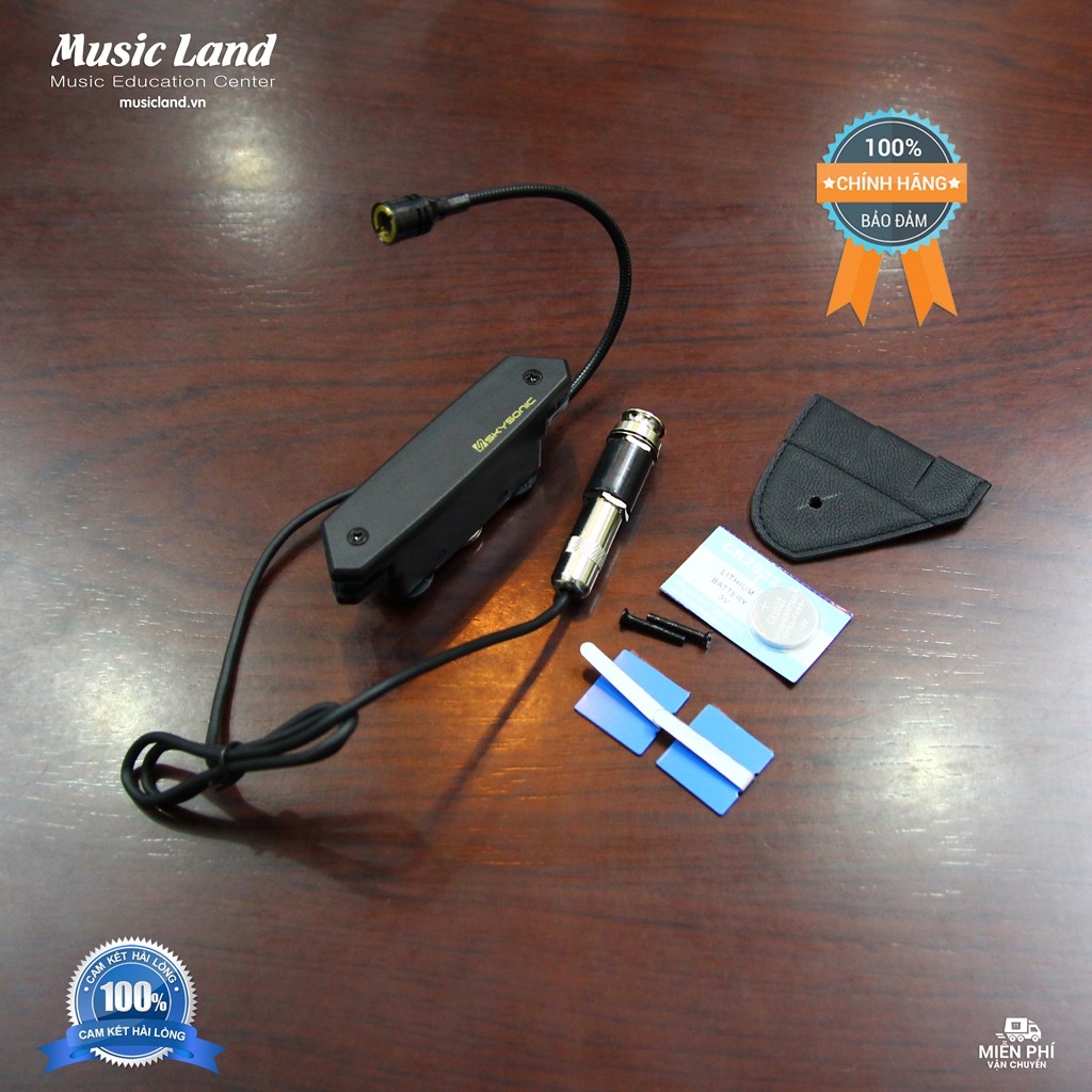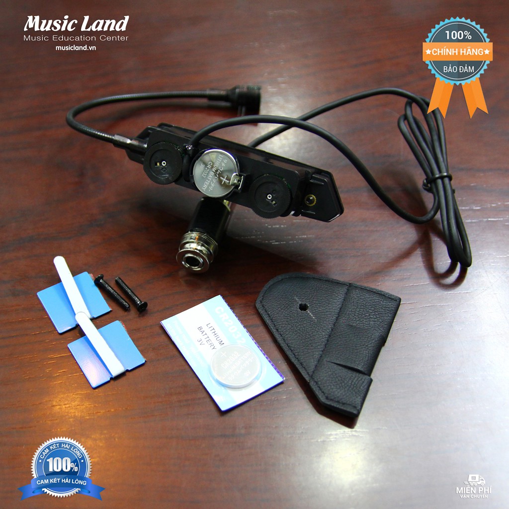 - Sản phẩm bao gồm : 1 Pickup + 2 miếng dán nẹp dây + 1 miếng da cố định đầu kết nối jắc 6ly + 2 ốc siết + 2 Pin CR2032 + Sách hướng dẫn sử dụng.(như hình)