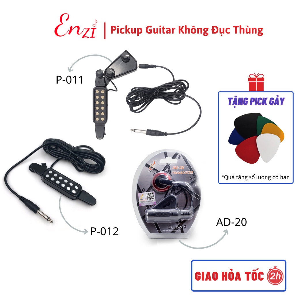 Pickup P 012 và pickup AD 20 kích âm thanh mộc từ guitar ra loa không cần đục thùng chất lượng EnziPickup là thiết bị để nhận tín hiệu âm thanh từ guitar, sau đó truyền ra hệ thống âm thanh bên ngoài .Pickup giúp cho âm thanh mộc của guitar được khuếch đại lên gấp nhiều lần khi biểu diễn trên sân khấu . Pickup dùng trong thu âm sẽ giúp cho tín hiệu thu âm được “sạch” hơn, không bị lẫn tạp âm bên ngoài mà không phải đục đàn để lắp , có thể sử dụng được trên nhiều đàn.