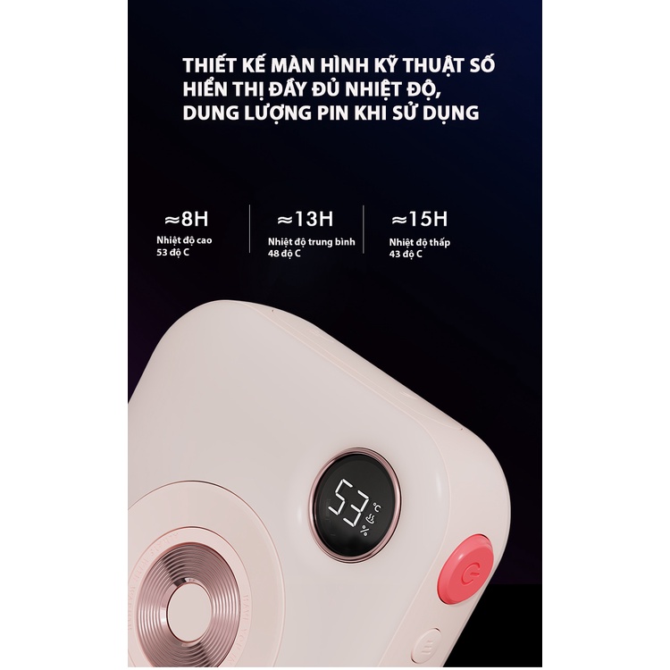 + Trang bị 3 mức nhiệt độ, đáp ứng đầy đủ nhu cầu sử dụng của mọi người: mức nhiệt thấp 43 độ C, mức nhiệt trung bình 48 độ C và mức nhiệt cao 53 độ C.