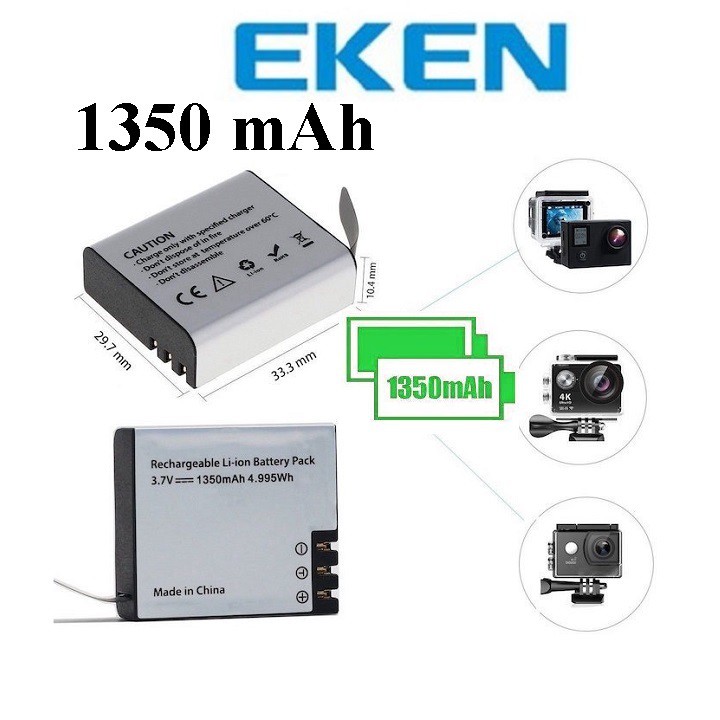 Giới thiệu Pin 1350 mAh Cho Mọi Camera Hành Trình Eken H9r, SJCAM 4000, Amkov, Camera 4k