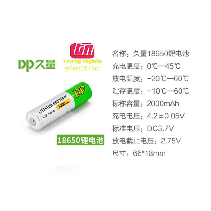Giới thiệu [PIN 18650 CAO CẤP DP] Pin sạc 18650 Lion DP 3.7V 2000mAh