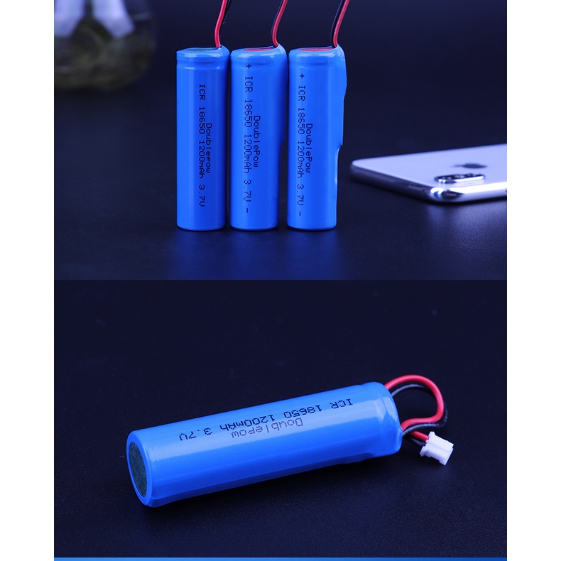 Pin 18650 lithium 1200mAh sắn dây chuẩn PH2.0 doublepow có mạch bảo vệHàng chuẩn nội địa TQ
