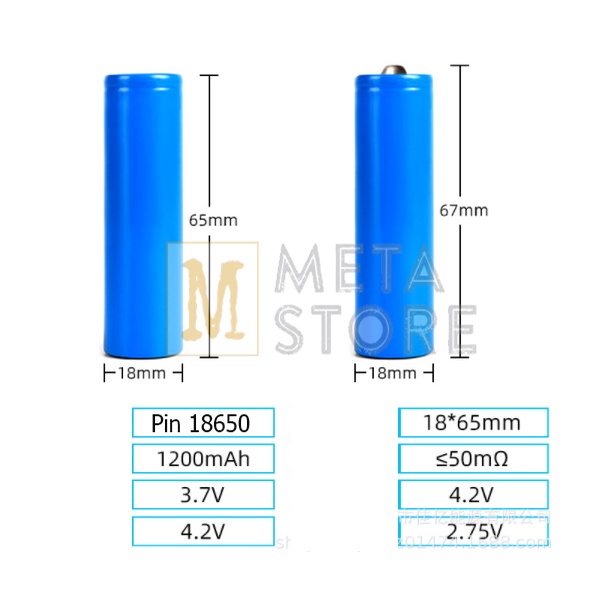 Pin 18650,pin sạc 3 7v METAL STORE dung lượng 1200mah đầu nồiThông số pin 18650: