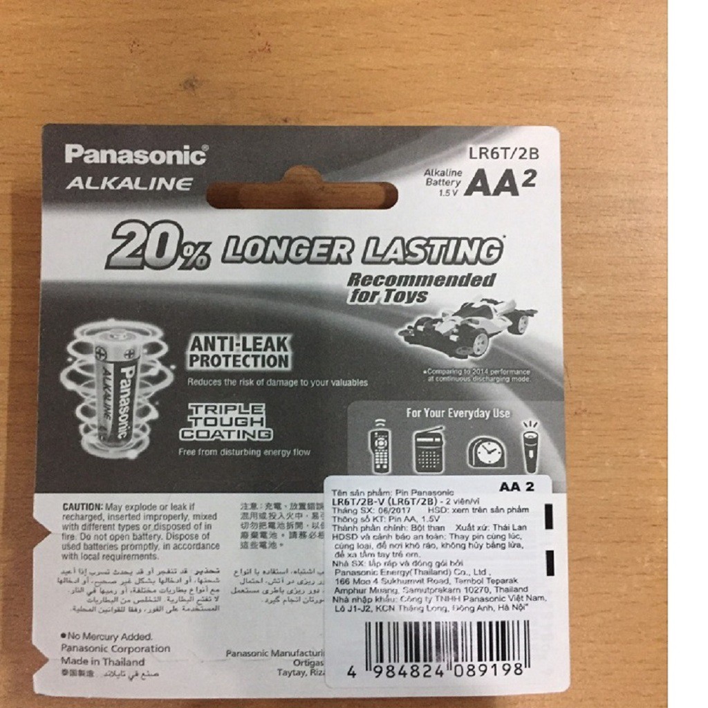 - Pin Panasonic AA Alkaline LR6T/2B là loại pin kiềm chất lượng cao, hoạt động lâu hơn 20% so với các loại pin khác
