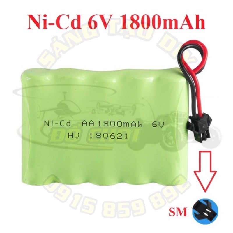 Pin 6V 1800mAh mới 100%. Pin Ni-Cd sạc lại dùng được nhiều lần